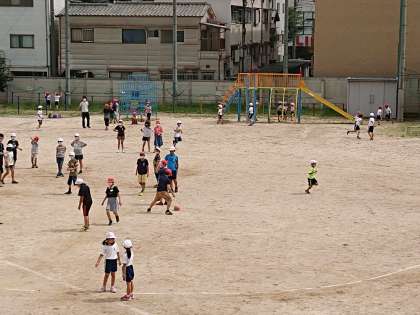 一輪車、ドッジボール、おにごっこなど、楽しそうに遊んでいます。