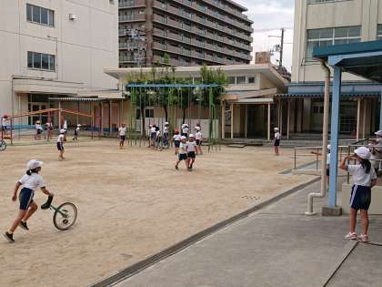 雨が降りそうですが、子どもたちは元気に遊んでいます。