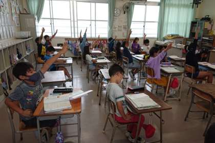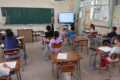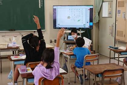文の中で主語はどの言葉か、述語はどの言葉か見つけています。