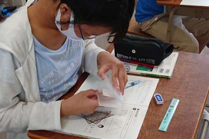 形が同じ図形の、対応する直線の長さや角の大きさについて調べました。