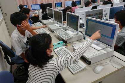 図画工作科の時間に描く「浮世絵」の題材をインターネットで探しているようです。