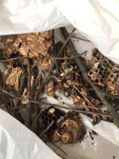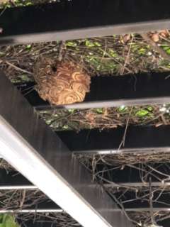朝、藤棚に作られていたスズメバチの巣を子どもたちが発見して、報告に来てくれました。