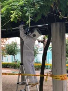 すぐに駆除する業者に連絡をとり、児童の安全を考え、下校後駆使してもらいました。