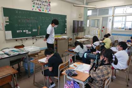 4年生の算数科では、学級を2分割し、少人数で学習を進めています。