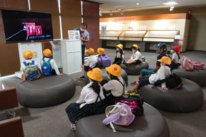 町たんけんの一環として、校区内にある「江崎記念館」を見学しました。