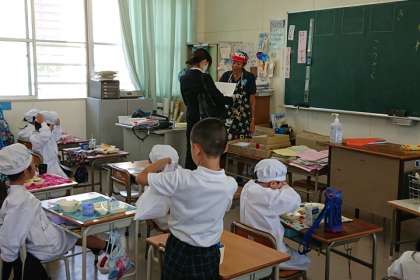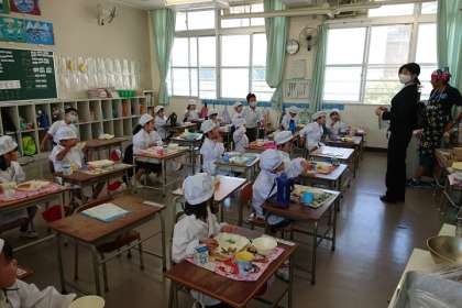 給食の時間、9月に教育実習に来ていた先生が教室をのぞきに来ました。