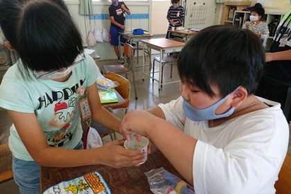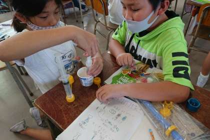 結果が分かると、空気の場合と水の場合の違いに、子どもたちは驚いていました。