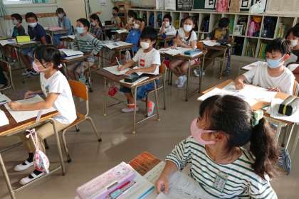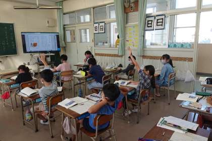 4場面の「心情曲線」は上がるのか、下がるのか、子どもたちから2つの意見が出たところで授業が終わりました。