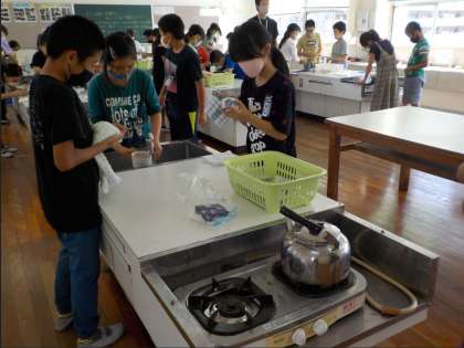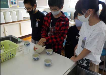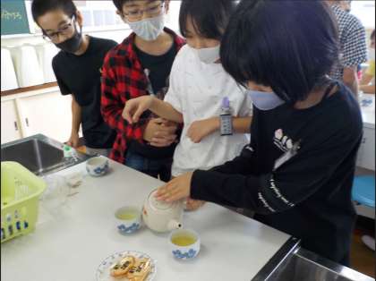 家庭科の時間、自分たちでお茶を入れる実習をしました。