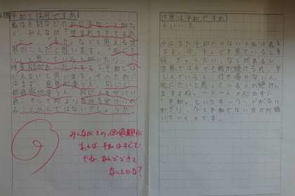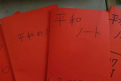 平和とはどんなことか、今、世界は平和かどうか、一人一人考えたことをノートにつづっています。