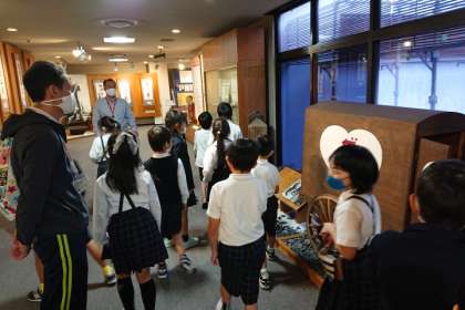 町たんけんの一環として、校区内にある「江崎記念館」を見学しました。