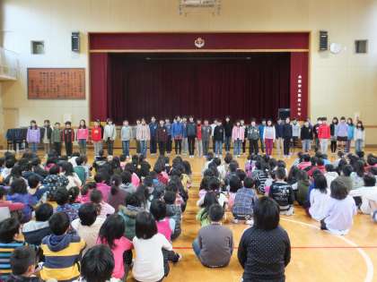 本日1月19日の全校朝会で5年生が群読を披露してくれました。