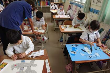 遠足で楽しかったことを思い出しながら、いきいきとかいています。