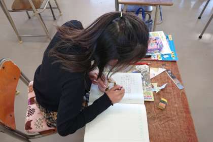 身の回りのものから「まるい形」を探して、ノートに写しました。