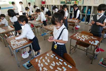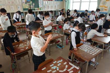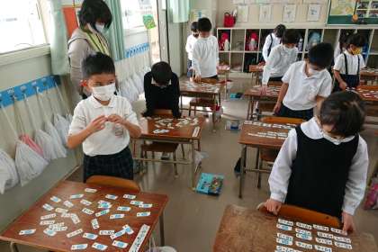 計算カードを使って、たし算が速く正確にできるよう練習しています。