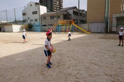 ボールを投げたり受けたりする練習をしています。