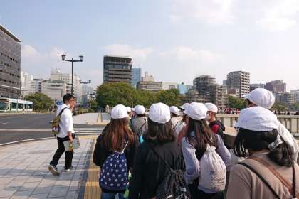 原爆投下の目標地点とされた相生橋を通って、広島平和記念資料館へ。