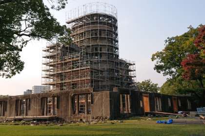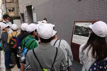 原爆が投下された爆心地を通って、宿近くの、原爆ドームの前で集合しています。