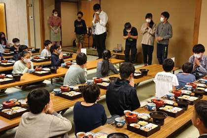 宿のスタッフの方の説明を聞いて、食事係の合図で、