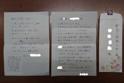 「この度は、小学生の皆さんのお手紙、うれしく受けとりました。
