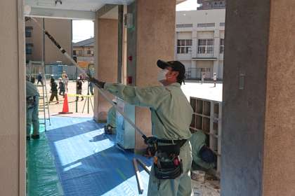 教育委員会の営繕班の方に、1階会議室付近の壁などの塗装をしていただいています。