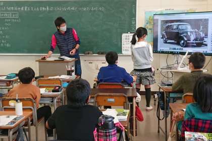 社会科の時間、自動車づくりに携わる人びとの工夫や苦労について学習していきます。