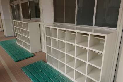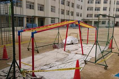 1階の会議室前と、運動場のうんていの塗装作業が終わり、とてもきれいになりました。