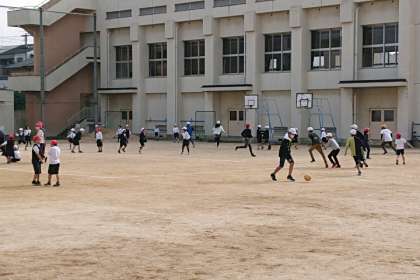 子どもたちは元気に外遊びしています。