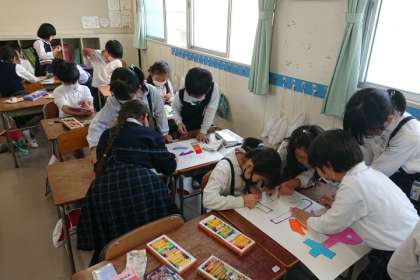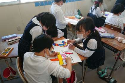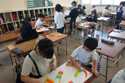 作品展に向けて、みんなで作品のタイトルの表示を作っています。