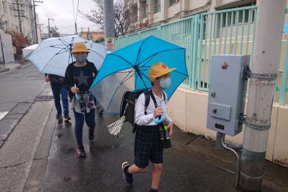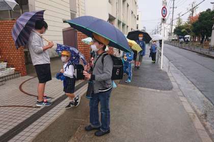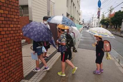 雨の中の登校となりました。
