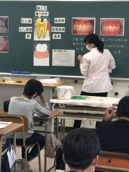 歯科衛生士の方に来ていただき、「歯と口の健康教室」を実施しました。