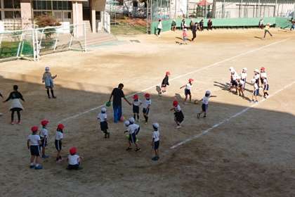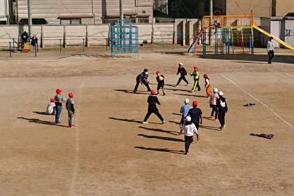 ぽかぽかと暖かく、たくさんの子どもたちが外遊びしています。