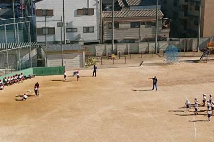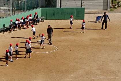 体力テスト「ソフトボール投げ」に向けて、練習しています。