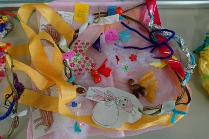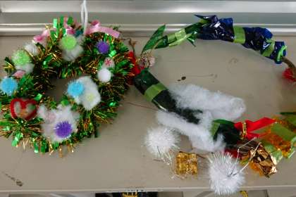 材料をうまく使って、きれいなリースができました。