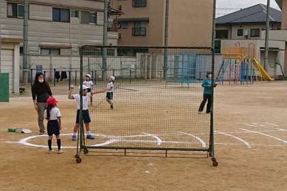 1年生にとって、初めての「ソフトボール投げ」です。