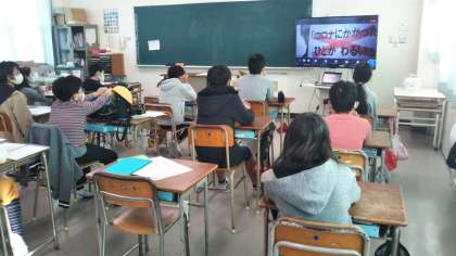 今日はTeamsを使って、校長室と各学級をオンラインで結び、児童朝会を行いました。