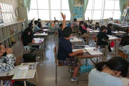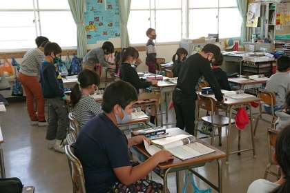社会科の時間は、お店の品物の売り方の工夫について学習しています。