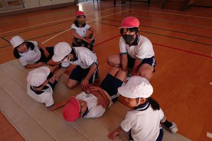 1年生が体力テストの「上体起こし」と「反復横とび」を行いました。