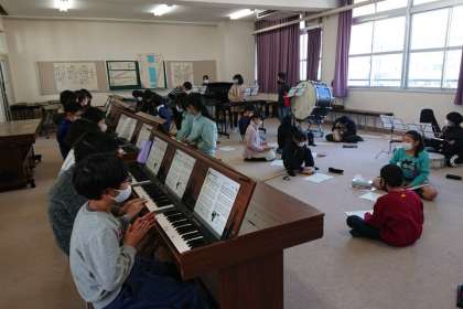 音楽科の時間に、「キリマンジャロ」の合奏練習をしています。
