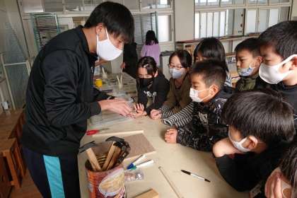 図工科の学習では、「コリントゲーム」を作っています。