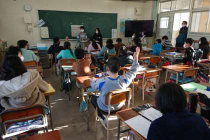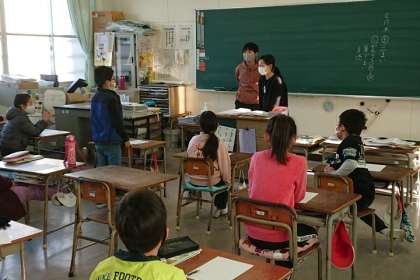 今日は、1・3・5年生の各教室に集会委員が直接出向き、児童集会を行いました。
