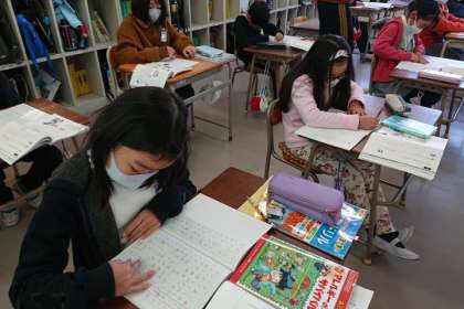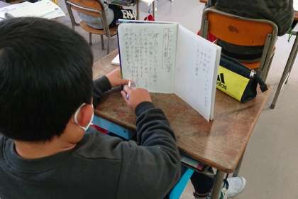 友達に読んでもらいたい本を選び、お互いに紹介し合うための原稿をノートに書いています。
