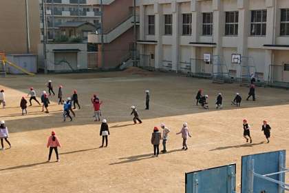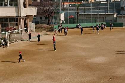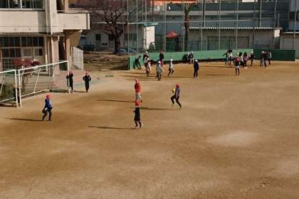 風は冷たいですが、子どもたちは元気に外遊びしています。