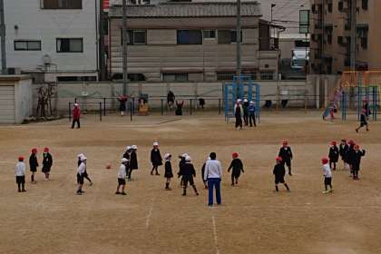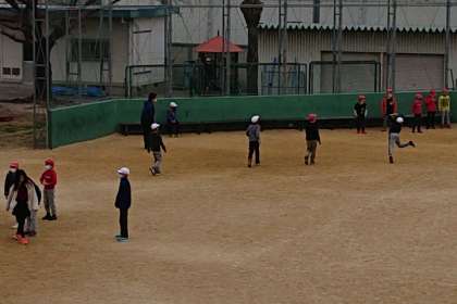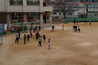 今日は、太陽が雲にかくれていますが、子どもたちは元気に運動場で遊んでいます。