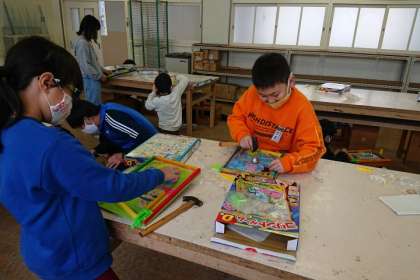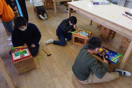 図工科の学習では、「コリントゲーム」を作っています。