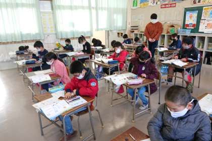 3年生では、社会科は1組の担任が、理科は2組の担任が2クラスとも授業を担当しています。