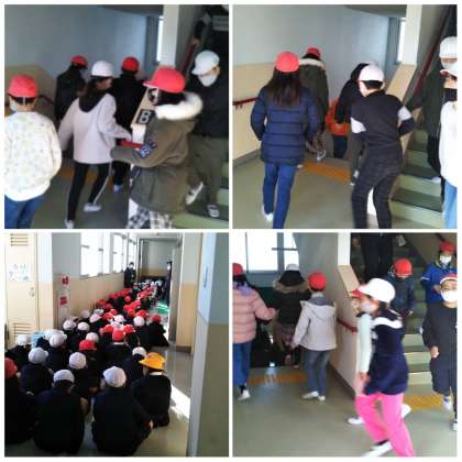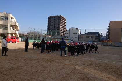 「避難開始」の合図とともに、静かにすばやく避難し、運動場に集合することができました。