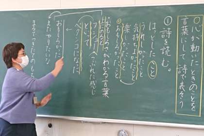 「心が動いたときのことを言葉にして詩で表す」ことが学習のねらいです。