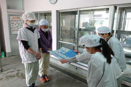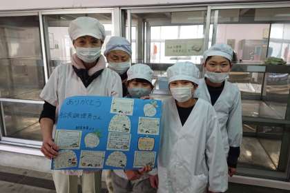給食調理員からは、「歌島小学校の子どもたちは残食が少なく、とてもよく食べているのでうれしい。」とのこと。