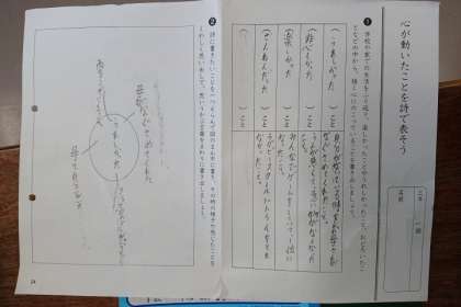 学校や家での生活をふり返り、楽しかったことやうれしかったこと、おどろいたことなどの中から、強く心にのこっていることを詩に表します。